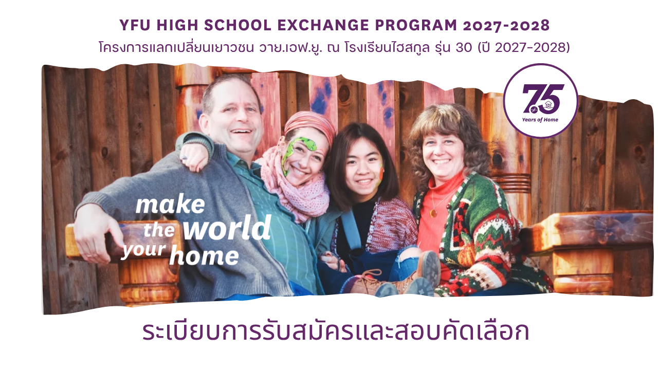 ระเบียบการรับสมัครและสอบคัดเลือก โครงการแลกเปลี่ยนเยาวชน วาย.เอฟ.ยู. ณ โรงเรียนไฮสกูล รุ่น 30 (ปี 2027-2028) รอบที่ 1